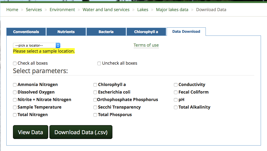 7.2 The King County website enables readers to view online or download a range of parameters relating to water quality which are regularly measured. Fig. 7.3 shows the range of data and dates that can be selected and Fig. 7.4 gives an illustration of the type of graph that can be obtained, in this case showing nutrient loading over time.